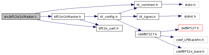 #include "tll_common.h"#include "bf52xI2cMaster.h"#include "bf52x_uart.h"Include dependency graph for bf52xI2cMaster.c: